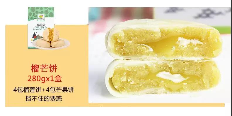 榴芒饼包装内,有4包榴莲饼+4包芒果饼。里面的夹心是实打实的果肉,轻轻咬一口,一不小心还会流出来~