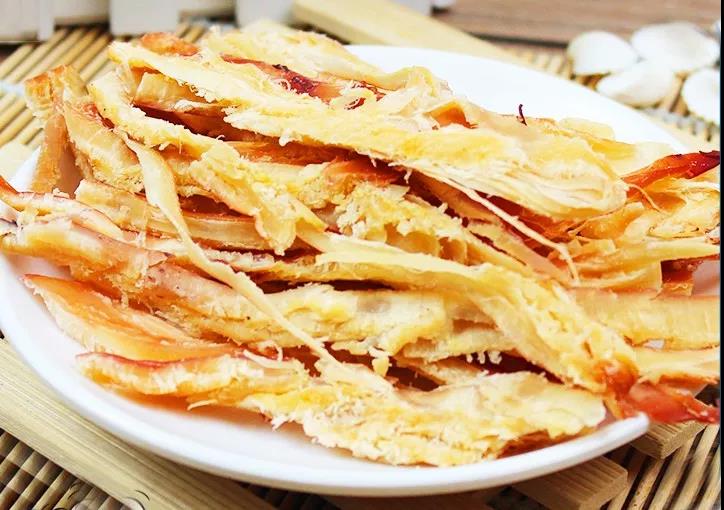 目鱼条像极了鱿鱼丝,味道也跟鱿鱼丝相似,但是比鱿鱼丝更有水分一些,吃起来更甜一些~