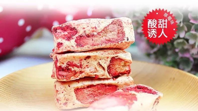 当牛轧糖恋上红草莓,牛奶与草莓的完美结合,牛轧糖也变得粉嫩粉嫩的。一口融舌尖,一口融心田。新鲜草莓烘焙的草莓内馅,香醇软糯口感适中,好吃不粘牙,让人久久难忘。